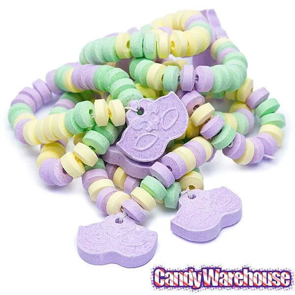 Box contains 12 individually wrapped Mardi Gras Candy Bracelets.