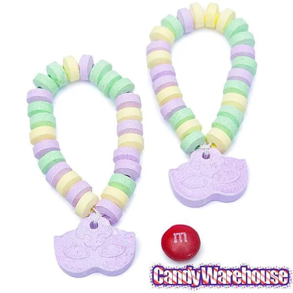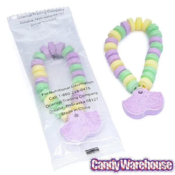 Featuring a hefty mask charm and traditional Mardi Gras colors of purple, green, and yellow, these fun candy bracelets are perfect for any Fat Tuesday celebration! Way more yummy than the plastic beaded trinkets normally thrown at Mardi Gras parades, these tasty jewelry treats are sure to please your party guests. Just toss them in goody bags or place in a dessert table candy bowl to unleash the sweet fun.