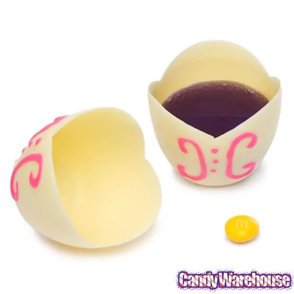 Add a touch of extra elegance to the dessert table at your next event by filling one of these classy cups with mousse, whipped cream, fruit, or any other small serving of your choice! Made entirely of white chocolate, each cup is hand decorated with a scrolling pink design that resembles a lacy bodice or a snappy little suit, so they’re certain to glam up any occasion! Whether your next gathering is a black tie affair, business-attire-only event, or merely a casual kickback, remember to incorporate the kind of dessert plate that makes for the easiest of cleanups -- the dessert cup you can eat!