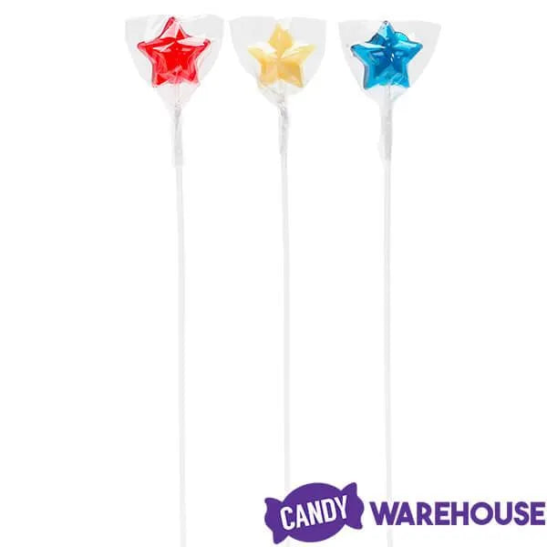 Bag contains 100 Red, White, and Blue Star-Shaped Hard Candy Lollipops.