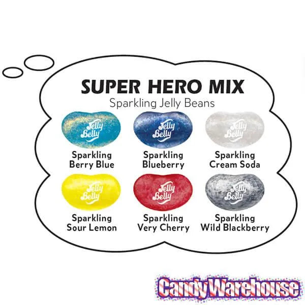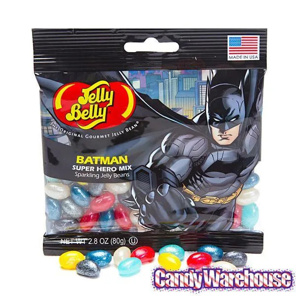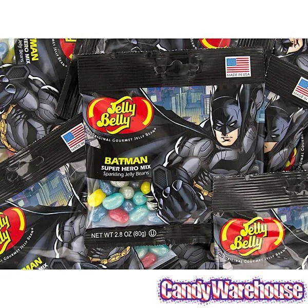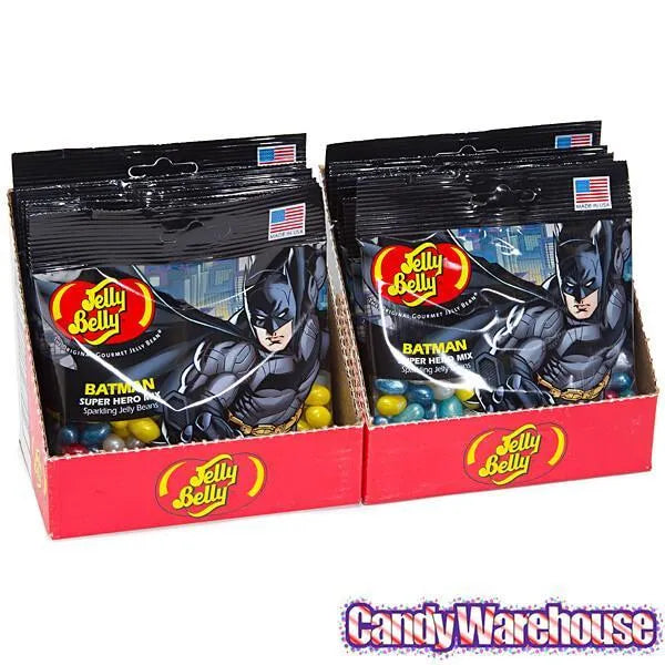 Display box contains 12 Batman Jelly Belly Superheroes Jelly Beans Bags, each with a net weight of 2.8 ounces.