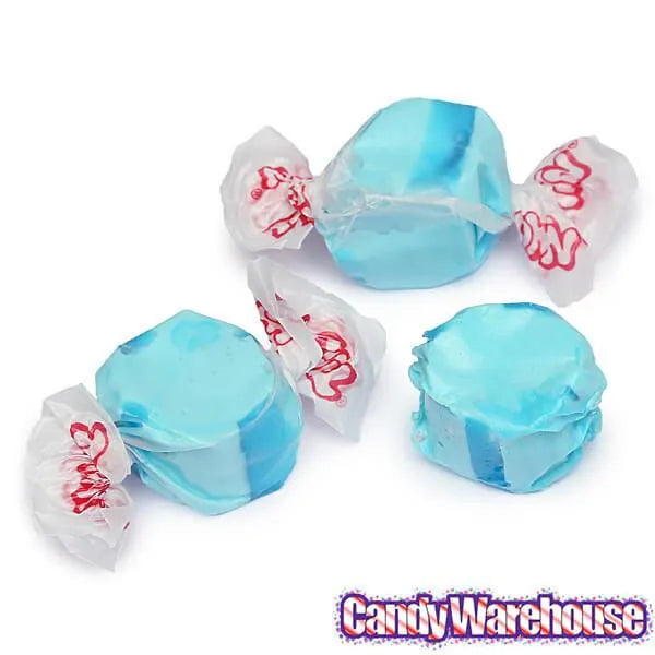Bag contains 2.5 pounds of Gourmet Blue Raspberry Salt Water Taffy Candy.