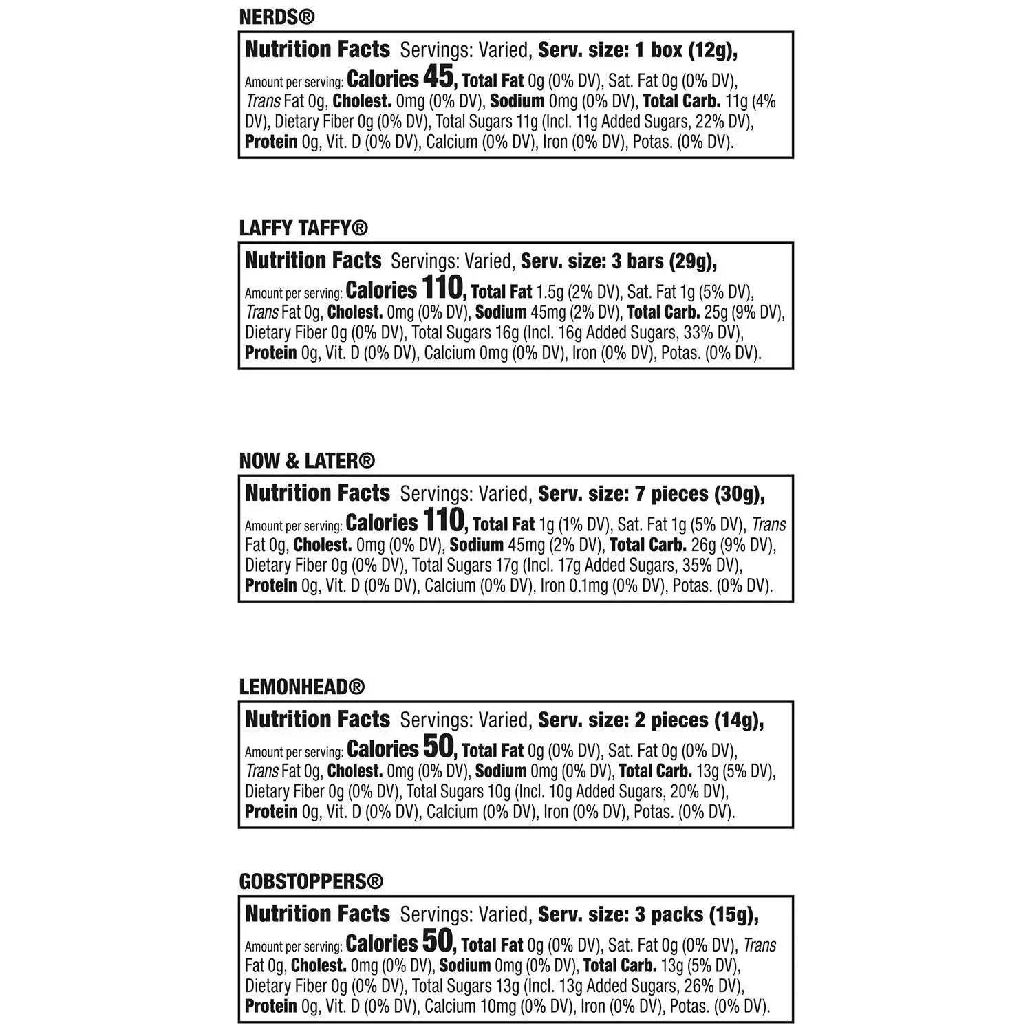 🍬 Includes 5 favorites: Nerds, Laffy Taffy, Now and Later, Lemonhead & Gobstopper