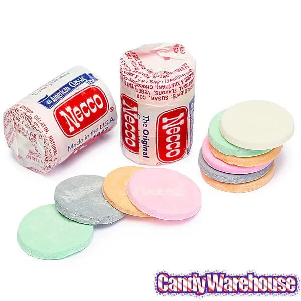 Tub includes 150 NECCO Candy Wafers Mini Rolls.