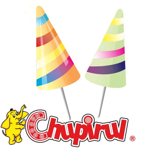 Festive lollipops featuring spiraling flavors from the bottom to the top of their unique cone shapes, Chupirul pops make excellent goody bag candies for birthday parties and other celebrations! Shaped like mini birthday hats, your event guests are sure to be surprised and delighted with every lick of these spiral cone suckers.