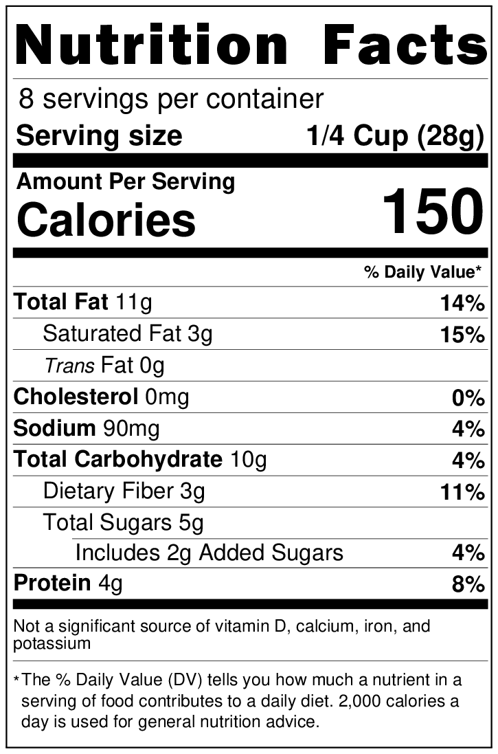 Sprouted Raw Almonds*, Sprouted Raw Cashews*, Sprouted Raw Pumpkin Seeds*, Maple Syrup*, Raisins*, Fair Trade Dark Chocolate* (Organic Cane Sugar*, Organic Cocoa Liquor*, Organic Cocoa Butter), Dried Cherries*, Coconut*, Vanilla Extract*, Sea Salt.