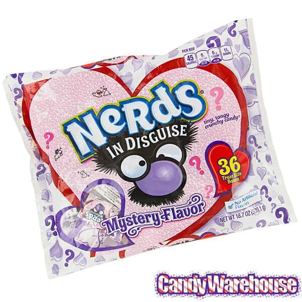 Ah, young love. Such a trifle. Such a mystery. Well, now the mystery is even more fun with Nerds in Disguise -- the same crunchy, fruity little candies you’ve come to adore, but in curious new flavors you’ll have to guess on your own. Hey, nobody said love would be easy! On the other hand, taking Valentine’s Day by storm couldn’t be easier, with 36 do-it-yourself card kits included for little lovebirds to dress up in their own creative ways before sharing the attached treats with their friends... or their secret crush.