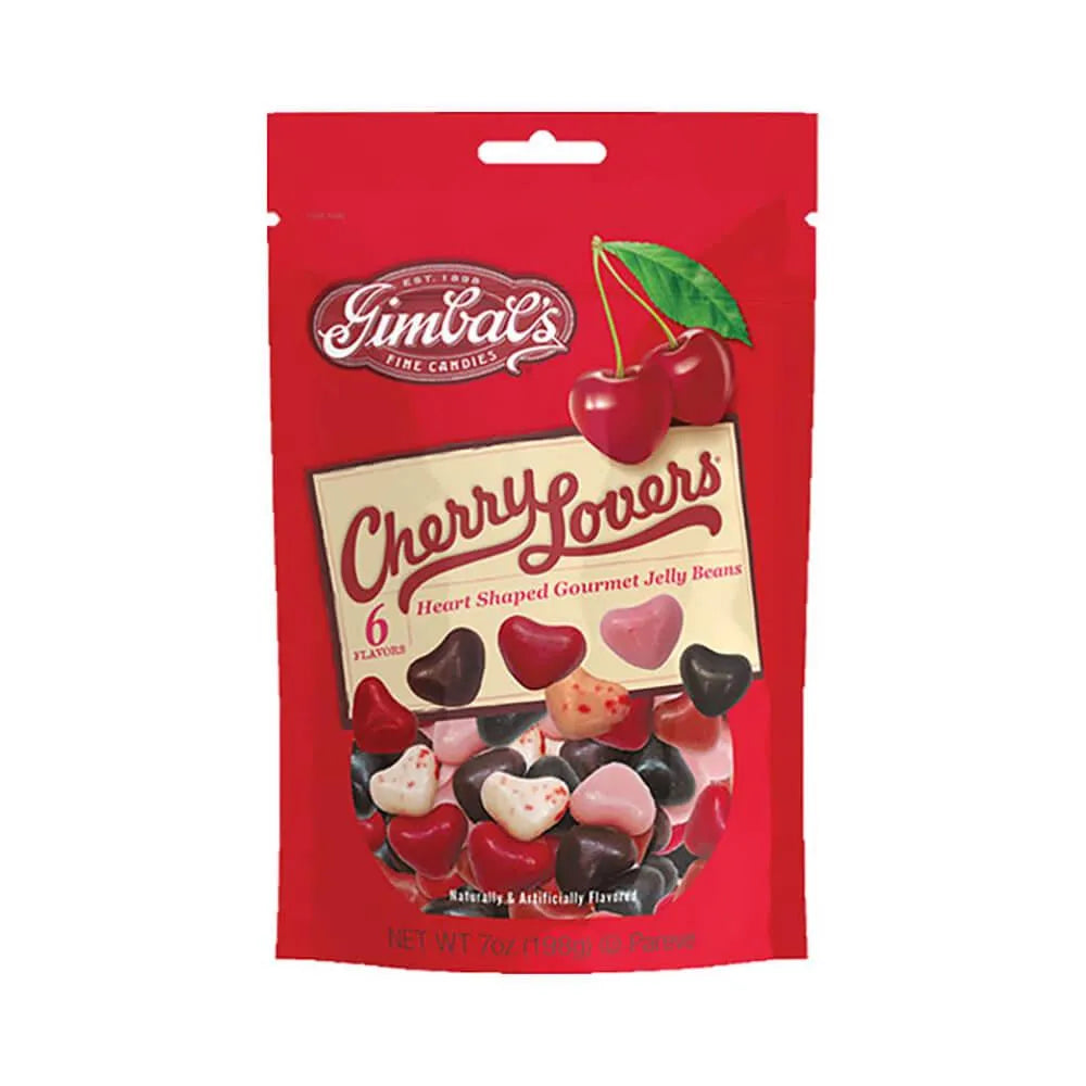 Bag contains 7 ounces of Gimbal's Cherry Lovers Jelly Beans Candy Hearts Assortment.