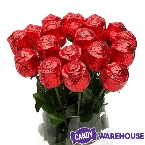 The best gift combination? Flowers and chocolate of course! Delicious Belgian milk chocolate is molded into the shape of a rose and then wrapped in distinctive metallic foil of a shiny red color. Whether you're designing a candy bar for a wedding or bat mitzvah, celebrating Mother's Day, or hosting a Valentine's Day party with a red color scheme, these long stem red chocolate roses offer a unique solution for candy in red!