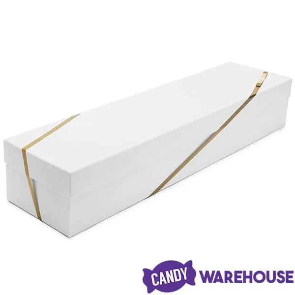 White florist box contains 12 Red Foil Wrapped Milk Chocolate Roses.