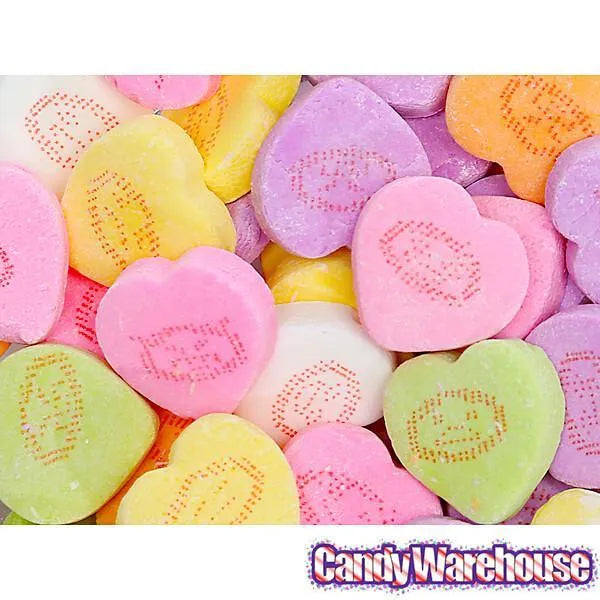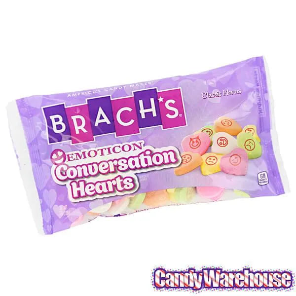 Bag contains 7 ounces of Brach's Emoticon Conversation Hearts Candy.