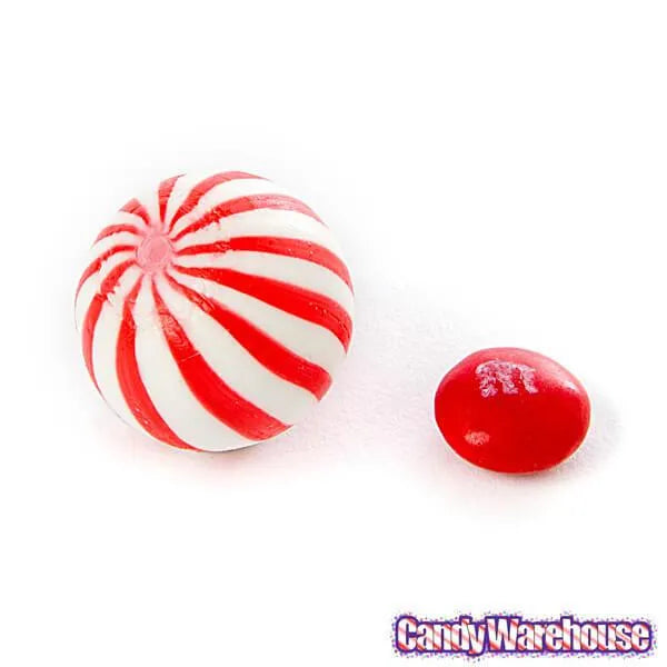 Bag contains 5 pounds of Red Sassy Spheres Striped Candy Balls.