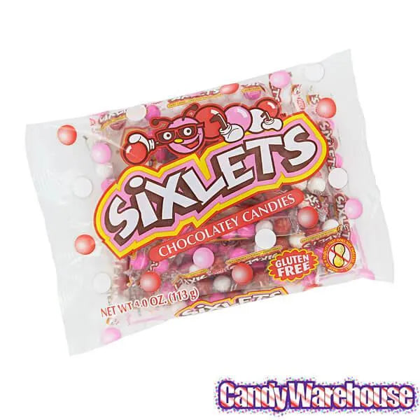 Bag contains 15 packs of Valentine Sixlets Chocolate Balls Candy.