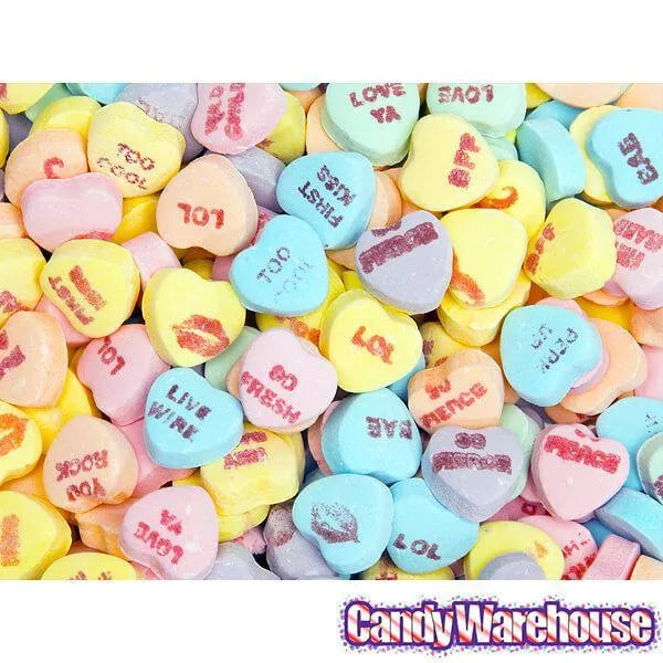 Resealable bag contains 1 pound of Sour Flavors Necco Sweethearts Tiny Conversation Candy Hearts... that's about 375 pieces.
