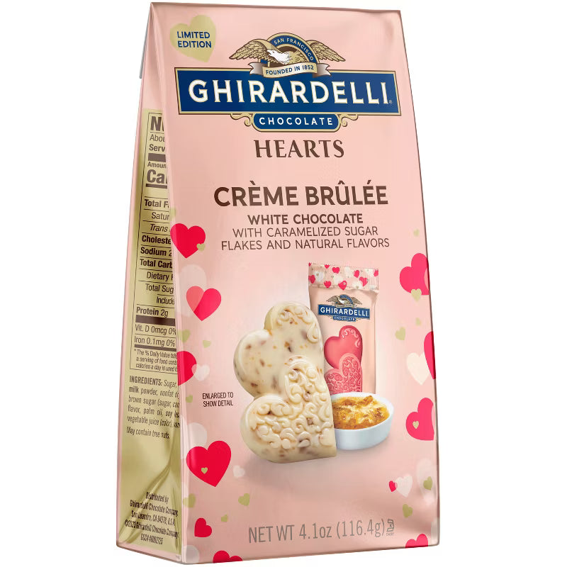 Ghirardelli Valentine's Creme Brulee Hearts White Chocolate: 4.1-Ounce Bag