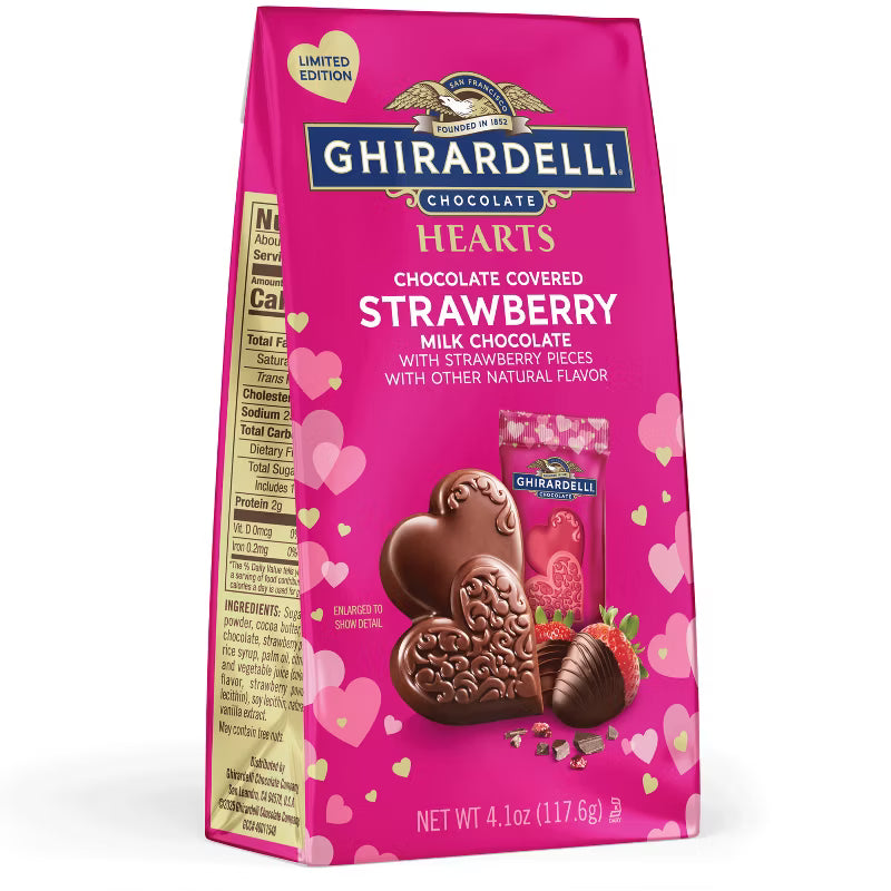 Ghirardelli Valentine's Strawberry Hearts Milk Chocolate: 4.1-Ounce Bag
