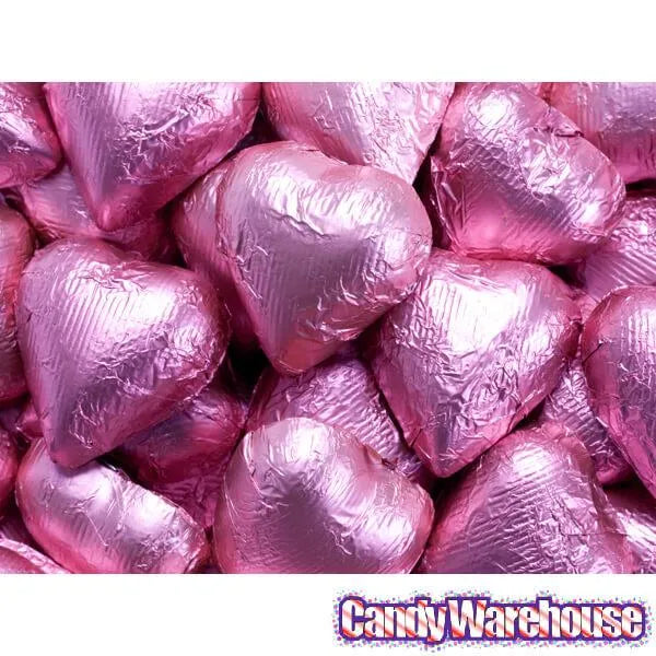 Foiled Milk Chocolate Hearts - Hot Pink: 2LB Bag