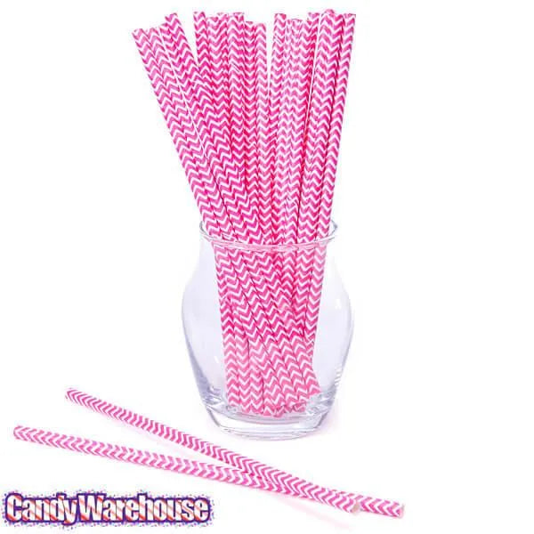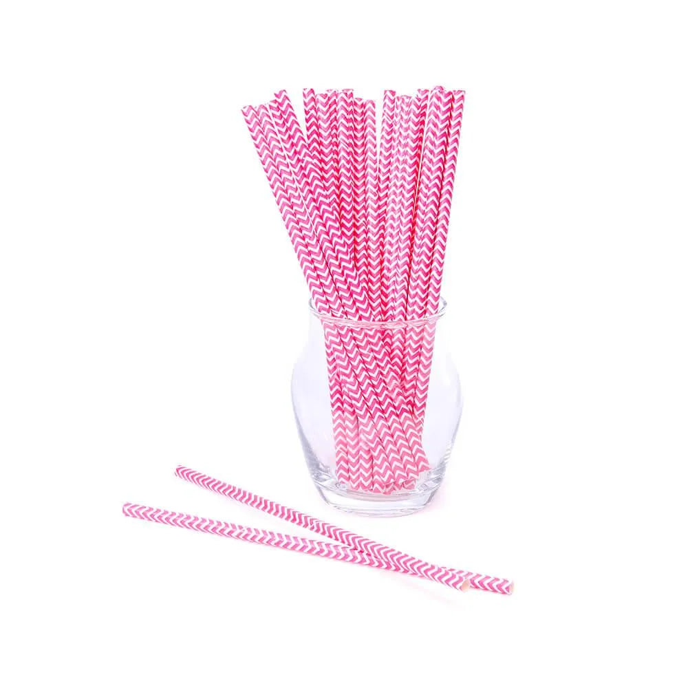 Paper 7.75-Inch Drinking Straws - Pink Chevron Stripes: 25-Piece Pack