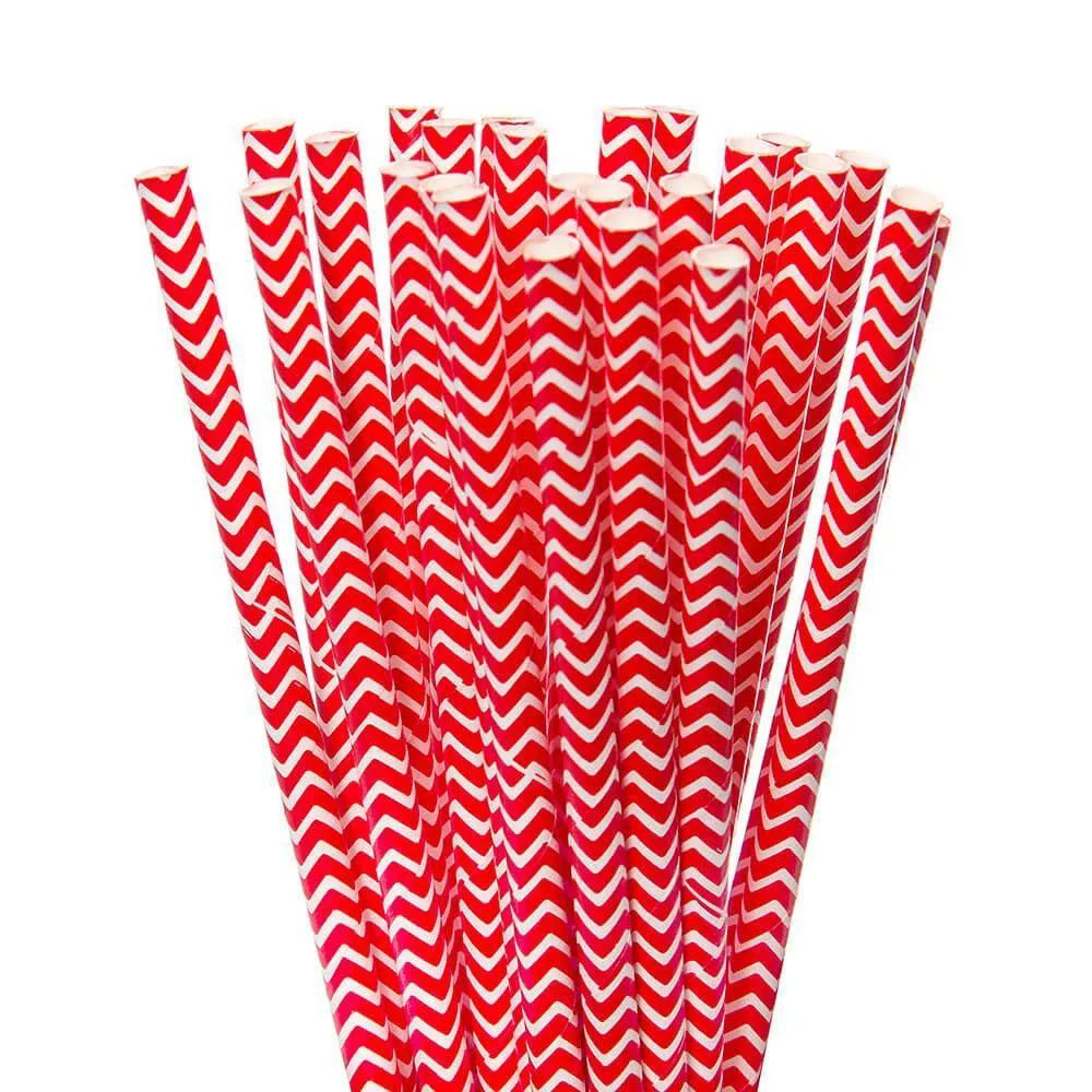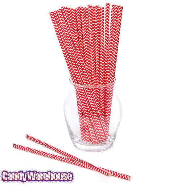 Paper 7.75-Inch Drinking Straws - Red Chevron Stripes: 25-Piece Pack