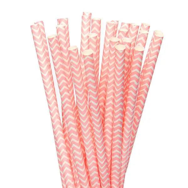 Paper 7.75-Inch Drinking Straws - Light Pink Chevron Stripes: 25-Piece Pack