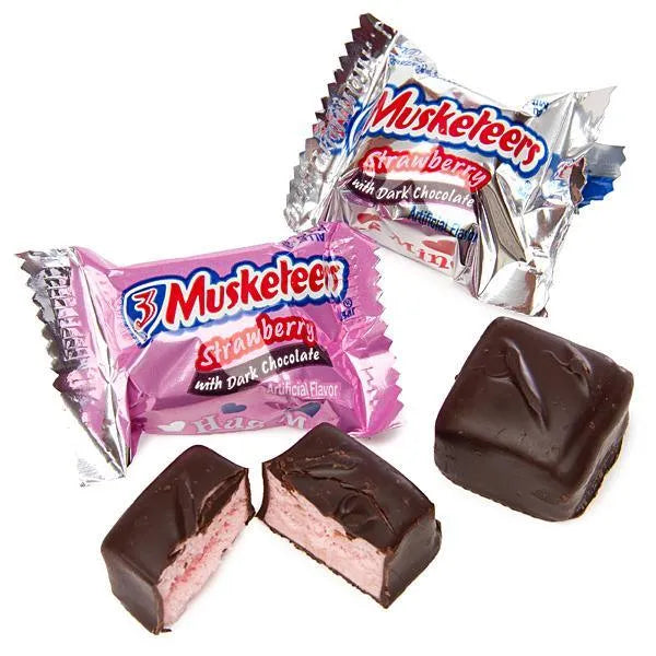 Valentine 3 Musketeers Strawberry Dark Chocolate Minis Candy: 9-Ounce Bag