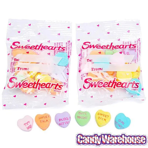 Case contains 400 packets of Modern Flavors Necco Sweethearts Tiny Conversation Candy Hearts.