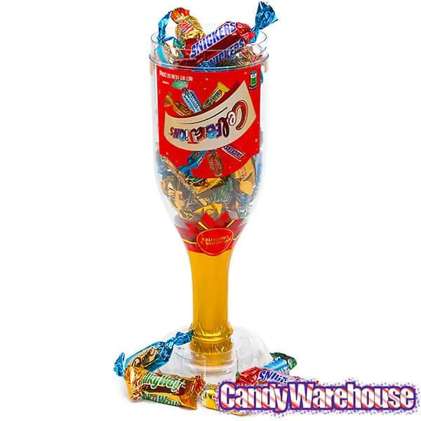 Plastic champagne bottle contains 10.9 ounces of Mars Celebrations Chocolate Candy.