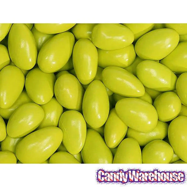 Yummy Jordan Almonds featuring fresh, plump almonds with a hard, crunchy candy shell of vibrant lime green!There are approximately 110 pieces per pound.Bag contains 5 pounds of Sconza Vibrant Lime Green Jordan Almonds Candy.Made in the USA.Shipping Weight ~ 6 lbs. Kosher Certified.