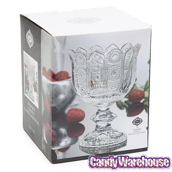 This exquisite crystal candy dish featuring decorative pinwheels is perfect for the home or office. Display your bulk candy with pride!Dish Dimensions-Length: 4.5 InchesWidth: 4.5 InchesHeight: 6 InchesShipping Weight ~ 3 lbs.